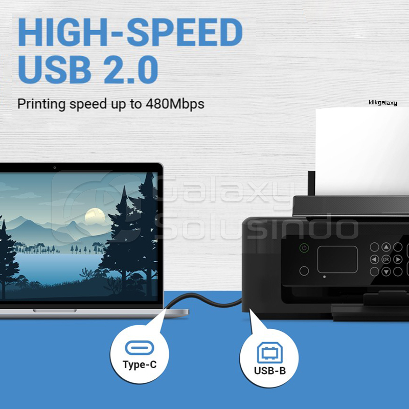 SPECIFICATION : Interface : USB-C / USB-B Transmission Speed : Up to 480Mbps Color : Black Panjang: 1.5 Meter