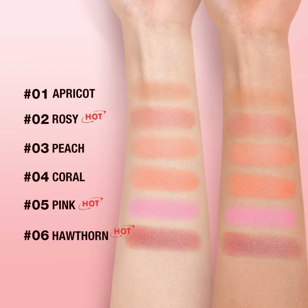 • Fine and fine powder for blending • No flying powder, no powder stuck • Highly skin-friendly • Natural color rendering • No visible pores • plump cheeks