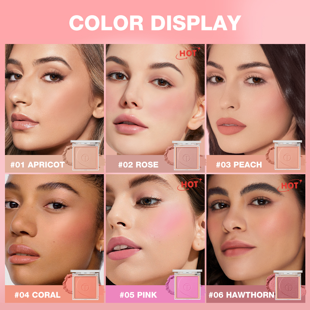 ✨The blush powder is delicate and smooth, not easy to fly powder, natural color, good smudge without borders, naturally blends into the base makeup, does not show pores, just like the good complexion that comes with the skin. Remove yellowing and whiten, swell and plump the cheeks, naturally modify the face shape, and give a three-dimensional makeup feeling; long-lasting makeup, not easy to take off, create smart cheeks.