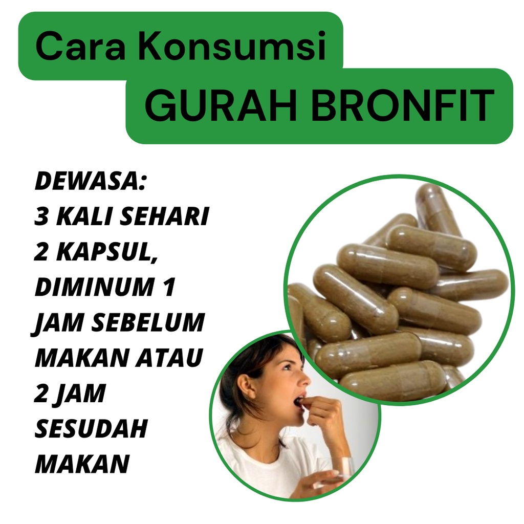 Aturan Minum Gurah Bronfit 30 Kapsul : Dewasa: 3 Kali Sehari 2 Kapsul, Diminum 1 Jam Sebelum Makan Atau 2 Jam Sesudah Makan