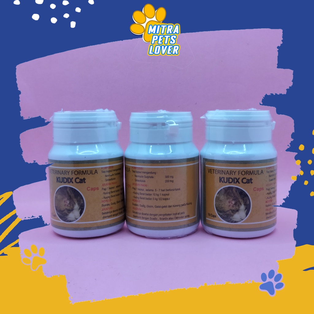 Aturan pakai : Pagi 1 kapsul selama 5-7 hari berturut turut - Kucing berat badan 10 kg 1 kapsul - Kucing berat badan 5 kg ยฝ. Kapsul - Sebaiknya disertai dengan pengobatan topical yaitu disemprot dengan scadix, scardix atau demodex spray.