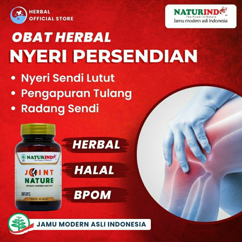 JOIN NATURE NATURINDO Herbal alami yang diformulasikan khusus untuk Nyeri Sendi di formulasi dari campuran ekstrak Rimpang Jahe Merah, Daun Sirsak, Buah Lada, Herba Meniran, Daun Kumis kucing, dapat meredakan solusi nyeri sendi dan menyembuhkan solusi pengapuran sendi.