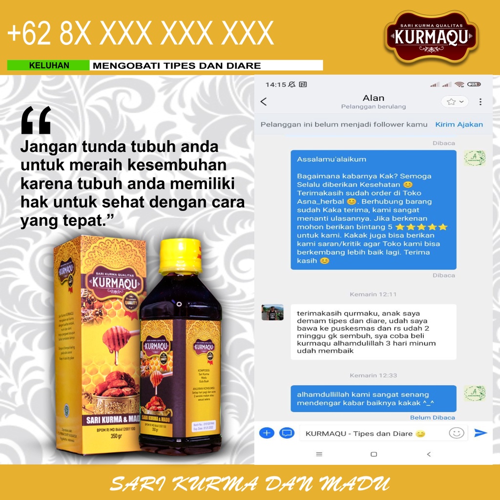Detail Obat Tipes Thypus Tifoid Demam Tinggi KurmaQu Sari Kurma Dan Madu Qualitas Premium 350 gr