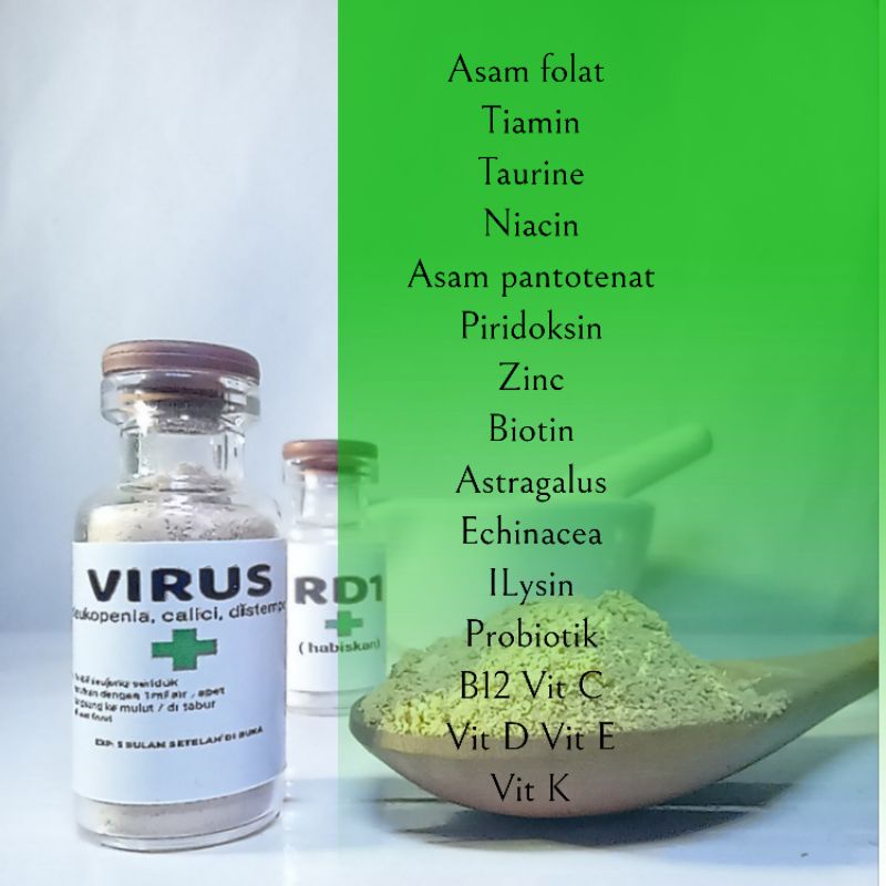 Dosis : untuk kucing usia 2bulan sampai dewasa pagi >>> formula virus seujung sendok teh malam >>> RD 1 seujung sendok teh