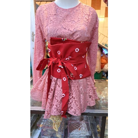 berbahan kain cinde dengan variasi tali pita di bagian depan,