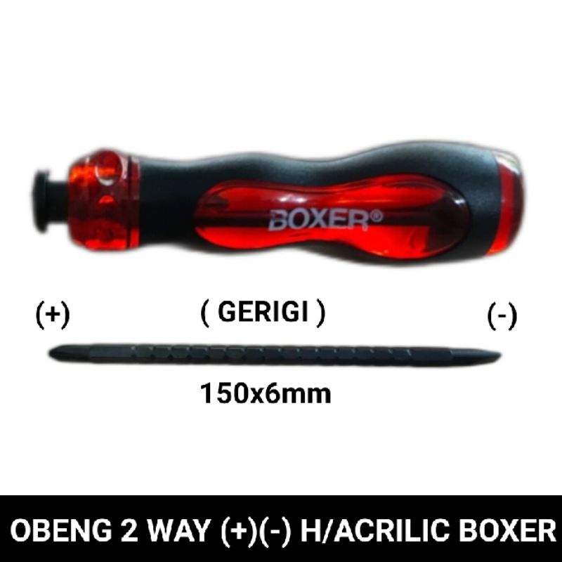 Detail obeng 2 way 4"-6" (+)(-) h/acrilic ( anti pecah ) boxer