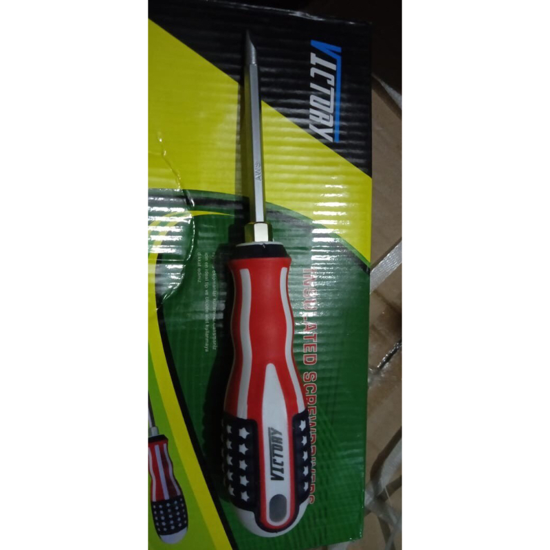 obeng 2 arah bolak balik ukuran 4 inch merk victory, motif bendera amerika