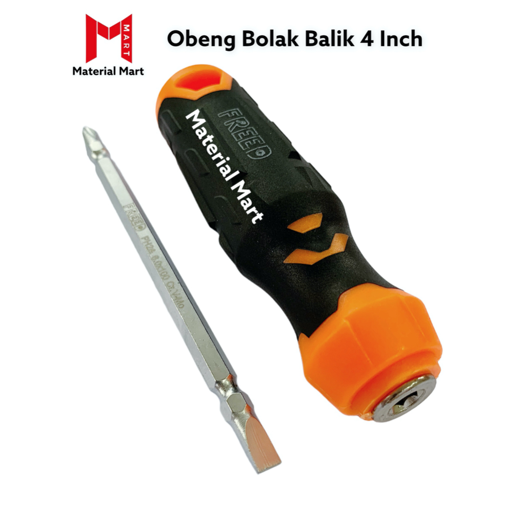 Obeng Bolak Balik / Obeng BB Ukuran: 4 Inch Warna: Hitam Oren Merk: Freed Ada magnet di ujung mata obeng