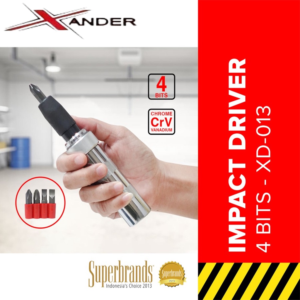 Detail Obeng Ketok Besi Impact Driver 4 Bits XD-013 Original Xander - OBEH063