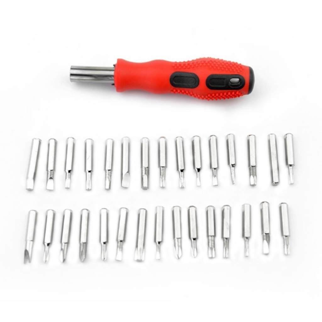 Set obeng kecil lengkap yang terdiri dari 30 kepala obeng + 1 pegangan. Ujung obeng bersifat magnetik. Setiap rumah wajib memiliki setidaknya 1 set obeng ini.