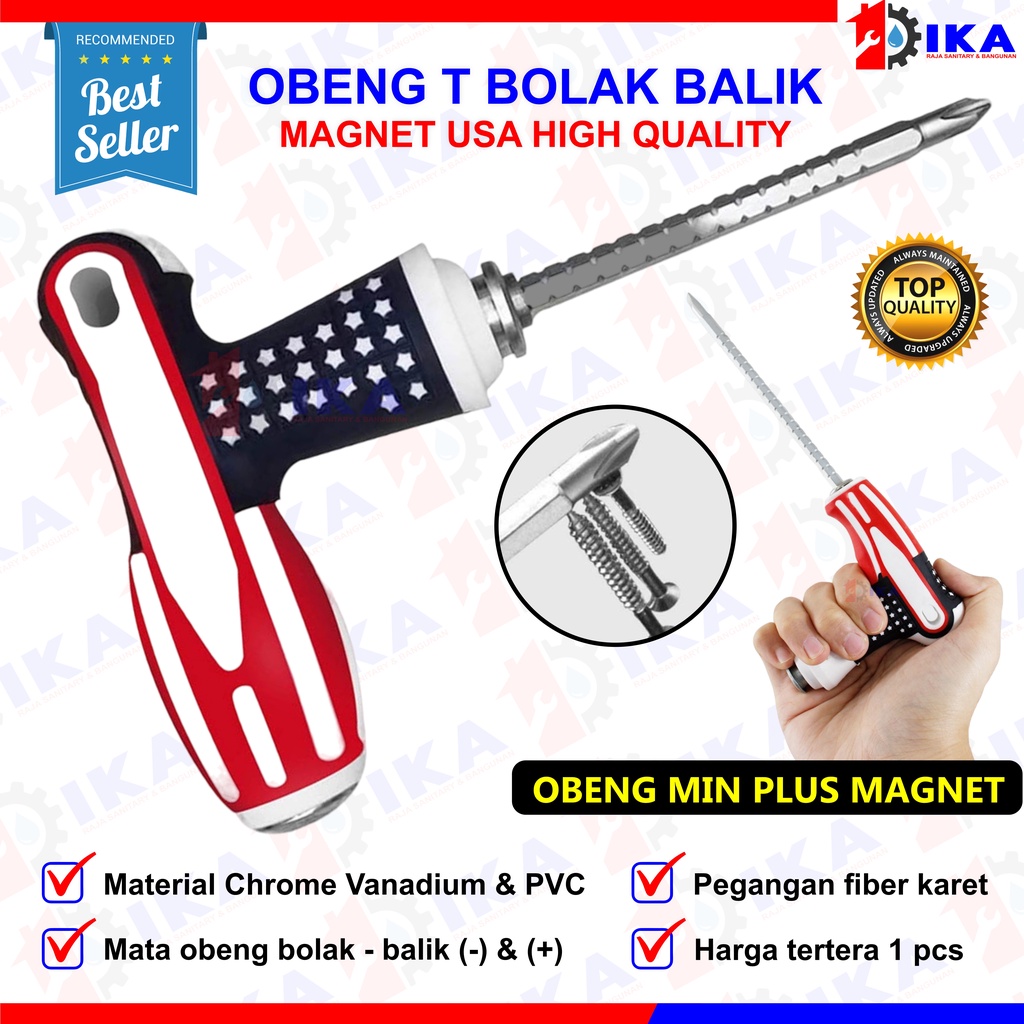 Perlengkapan Rumah > Perkakas > Bor, Obeng & Aksesoris > Obeng T Setir Bolak Balik 2IN1 MOTIF AMERICA USA Kombinasi Min Minus Plus Screwdriver Multifungsi Magnet Karet