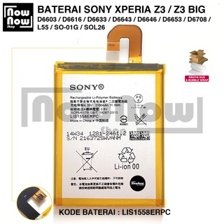 Baterai Sony Xperia Z3 / Z3 BIG / D6603 / D6616 / D6633 / D6643 / D6646 / D6653 / D6708 / L55 / SO-01G / SOL26 / Z3 DOCOMO LIS1558ERPC 1ICP5/61/78 Batre Batrai Battery HP