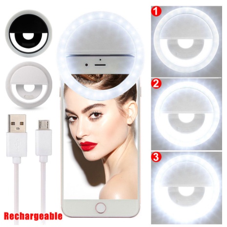 Ring fill light mini selfie ring 3 mode rechargeable Banyak dipakai juga oleh para MakeUP artist dalam dan luar negeri, untuk memfoto hasil makeup nya Kelebihan Lampu selfie ini