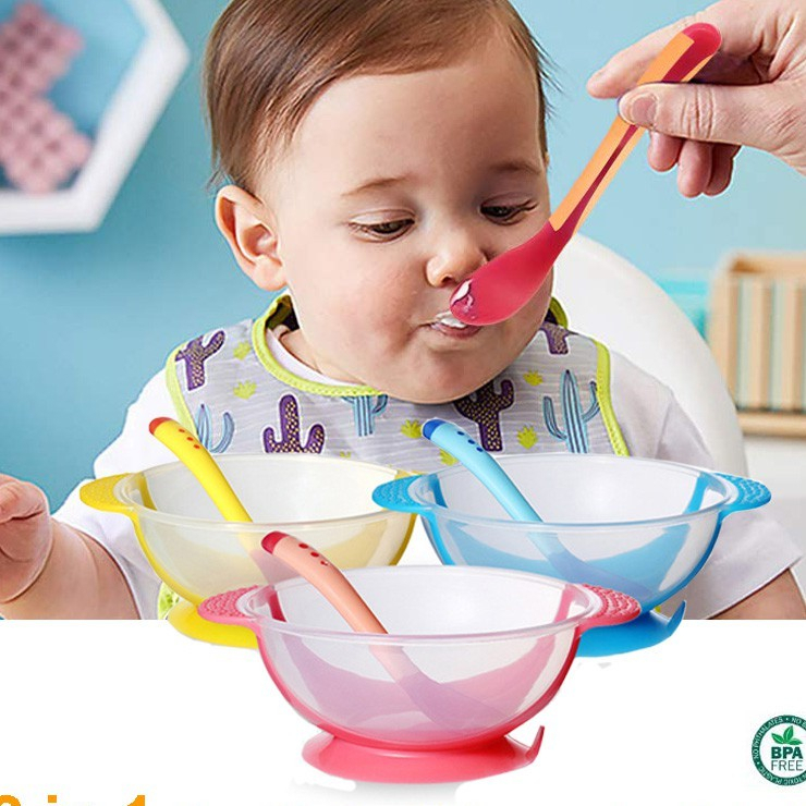 Bahan: Silicone + PP Warna: merah muda, kuning, biru Pilihan: Mangkok 1 PCS (tidak termasuk sendok dan garpu) Sendok 1 PCS Garpu 1 PCS Metode desinfeksi: suhu tinggi Fitur: 1. Kepala sendok terbuat dari bahan silikon yang lembut dan dapat ditekuk, sehingga tidak membahayakan mulut bayi 2. Kepala sendok memiliki fungsi penginderaan suhu, dan warna kepala sendok otomatis akan berubah saat terkena air panas untuk mencegah bayi melepuh oleh makanan panas 3. Bagian bawah mangkok didesain dengan suction cup yang dapat diserap di atas meja makan.Tidak akan mudah terjatuh