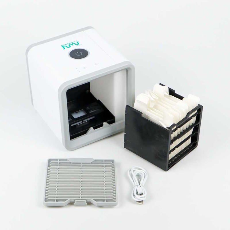 Alat ini dapat menghasilkan udara yang terasa lebih sejuk dan dingin. Air cooler mini ini dapat menampung 375 ml air. Anda juga dapat memasukkan air es agar udara lebih cepat dingin. Cooler ini memiliki bentuk yang minimalis sehingga sangat cocok untuk digunakan di mana pun.