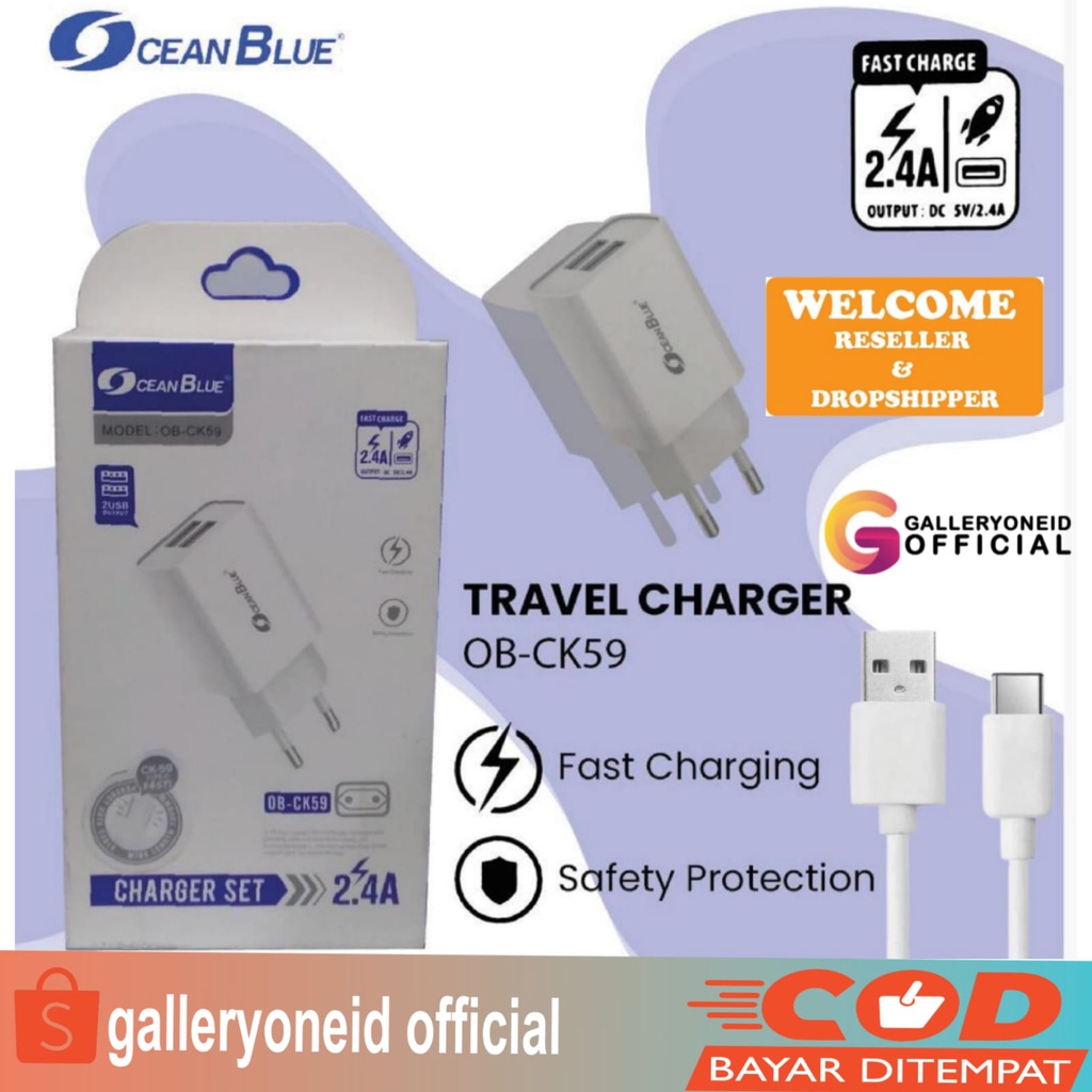 Detail Ocean Blue OB-CK59 Charger Hp Dual Port USB Type C 2.4A Fast Charging