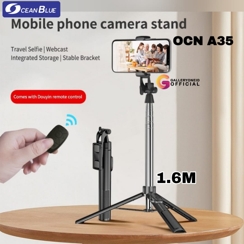 Detail Ocean Blue OCN A35 Tripod Tongsis Hp Selfie Stick Remote Bluetooth Shutter Adjustable