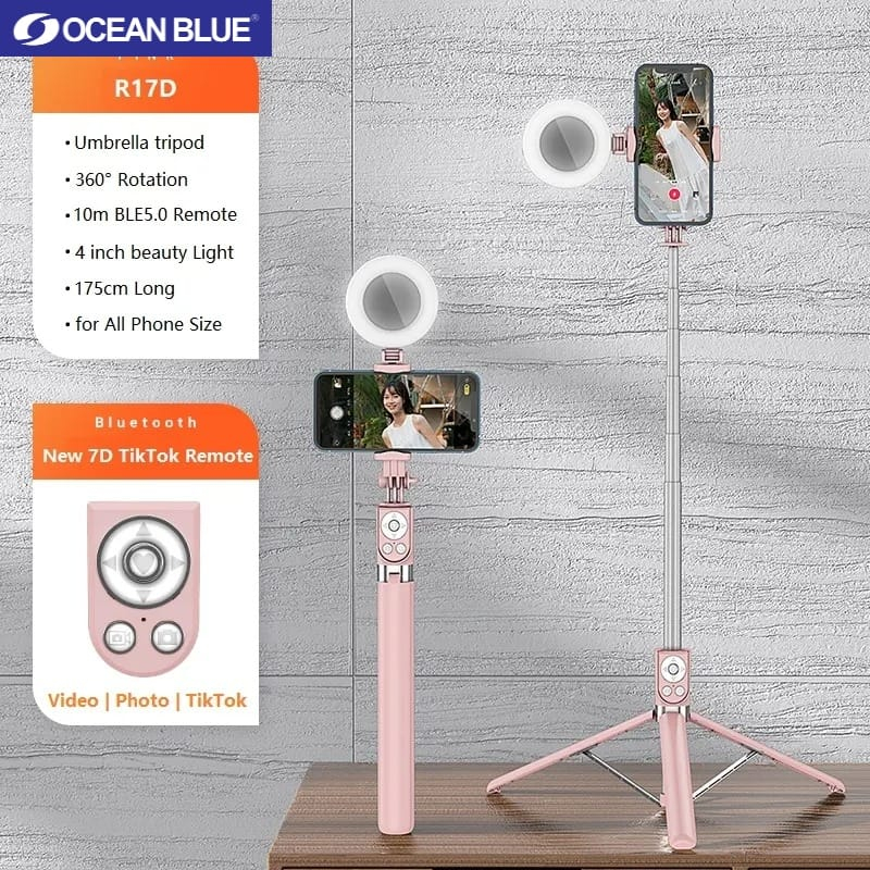 Detail Ocean Blue OCN R17D Tripod Tongsis Remote Bluetooth Selfie Stick Lampu LED Flash 360° Tongsis Tripod Ringlight Portable 360 Derajat