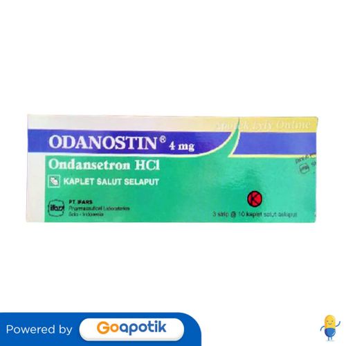 Deskripsi : PENGGUNAAN OBAT INI HARUS SESUAI PETUNJUK DOKTER. Digunakan untuk mengatasi mual dan muntah karena sitotoksik kemoterapi dan radioterapi, pasca operasi. | Komposisi : Tiap tablet mengandung ondansetron 8 mg | Dosis : ATURAN PAKAI HARUS SESUAI DENGAN PETUNJUK DOKTER. Dewasa, pada pemberian kemoterapi yang sangat emetogenik: 8 mg tiap 12 jam selama 5 hari. Kemoterapi yang kurang emetogenik: 8 mg per oral 1-2 jam sebelum kemoterapi diikuti dengan 8 mg per oral tiap 12 jam selama 5 hari. | Indikasi : Digunakan untuk mengatasi mual dan muntah karena sitotoksik kemoterapi dan radioterapi, pasca operasi. | Perhatian Khusus : Wanita hamil, wanita menyusui, anak-anak di bawah usia 2 tahun, pasien gangguan hati sedang dan berat. | Kemasan : DUS, 3 STRIP @ 10 KAPLET SALUT SELAPUT | NIE : DKL0809218509A1