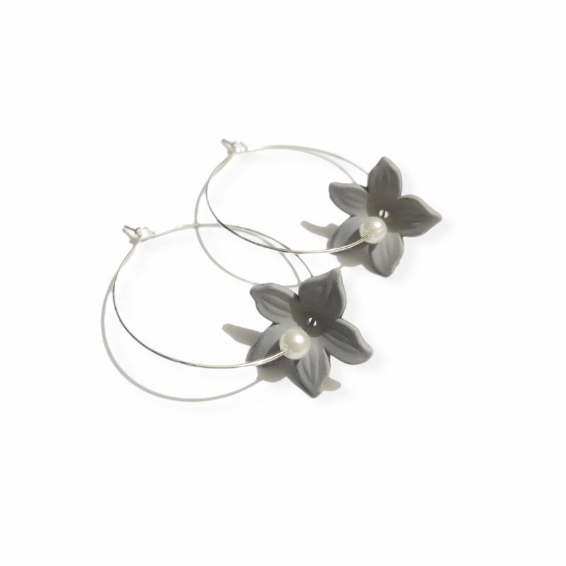 Detail Odelia Flower Hoops Earrings Anting Hoop Bulat Bunga Mutiara Pearl