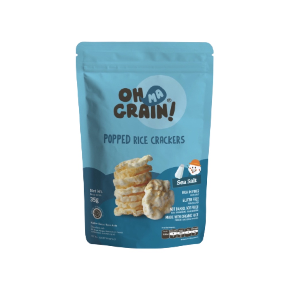 Detail Oh Ma Grain! Popped Rice Crackers Sea Salt Snack Makanan Ringan Anak 35gr