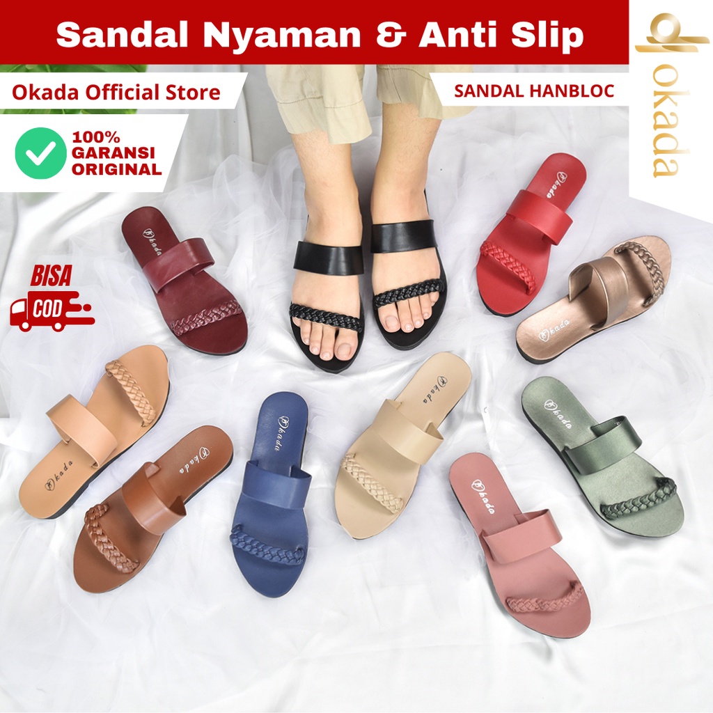 Sepatu Wanita > Slip Ons, Mary Janes & Mules > OKADA ORIGINAL SANDAL OKADA SANDAL TEPLEK SANDAL SLIP ON WANITA (HANDBLOC) ORIGINAL BY OKADA TERBARU 2023