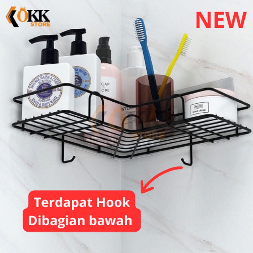 Detail OKK Rak Sudut Kamar Mandi Gantung Tempel Dinding Keramik / Rak Dapur Besi Serbaguna