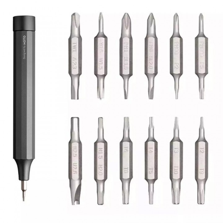 Ini adalah sebuah set obeng serbaguna dengan sebuah gagang obeng dan 12 buah bits (mata obeng) dengan mata ganda, menjadikan obeng set ini sangat cocok untuk kebutuhan perbaikan perangkat sehari-hari.