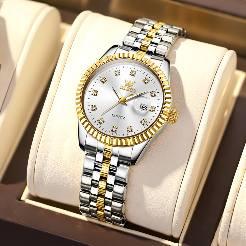 Jam Tangan > Jam Tangan Couple > Analog > OLEVS Jam Tangan Couple Pasangan Anti Air Original Waterproof Stainless Steel Terbaru 2023 Kasual Analog Emas Hitam Putih Model 5526