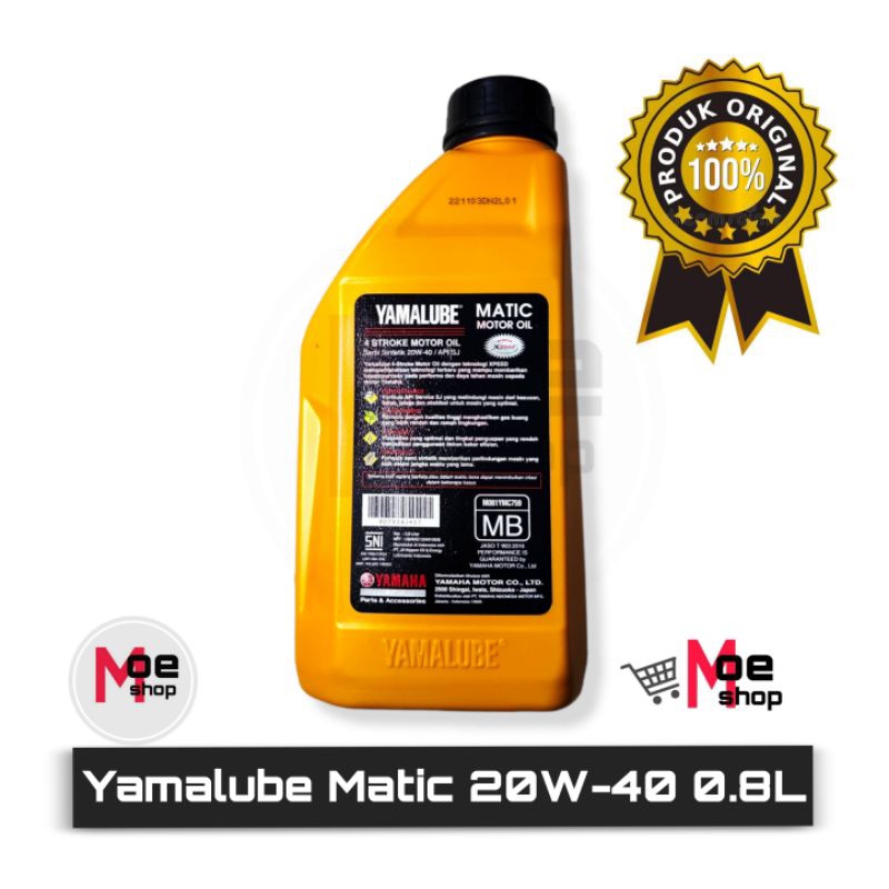 OLI YAMALUBE MATIC: VOLUME : 800 ML 4 STROKE MOTOR OIL Semi Sintetik 20W-40 / API SJ 100% ORIGINAL Bisa cek di Distributor resmi / Dealer resmi Yamaha