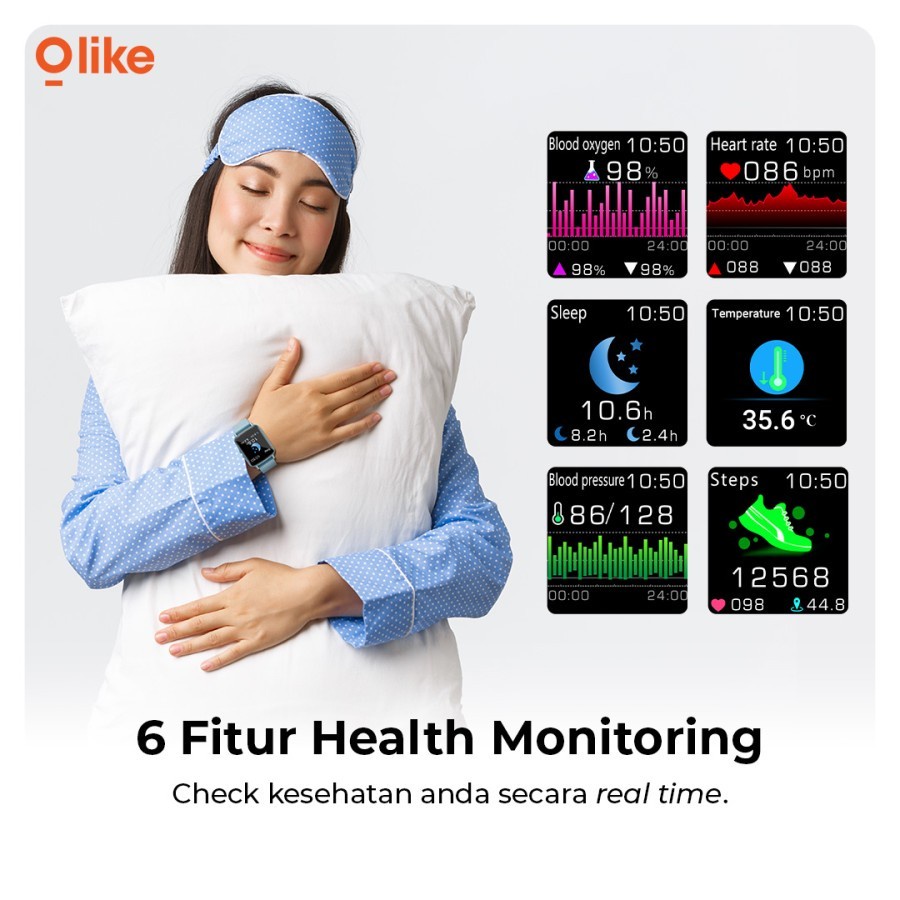 Spesifikasi : Smart Apps: iBand Bluetooth 5.0 Dimension: 33.5 x 43.5 x 10.8mm Watch Charging Time: 2 hours Smartwatch Battery: 180mAh Smartwatch Monitor Material: ABS + PC Watch Strap: Silicone 20 x 252.5mm ⭐ 6 Health indicator (Heart rate, blood pressure, Oxygen, body temp monitoring, sedentary reminder, sleep monitoring) ⭐ Smart Raise the wrist to brighten the screen ⭐ Magnetic Charging Cable ⭐ Triaxial Motion Sensor ⭐ Hear Rate Sensor