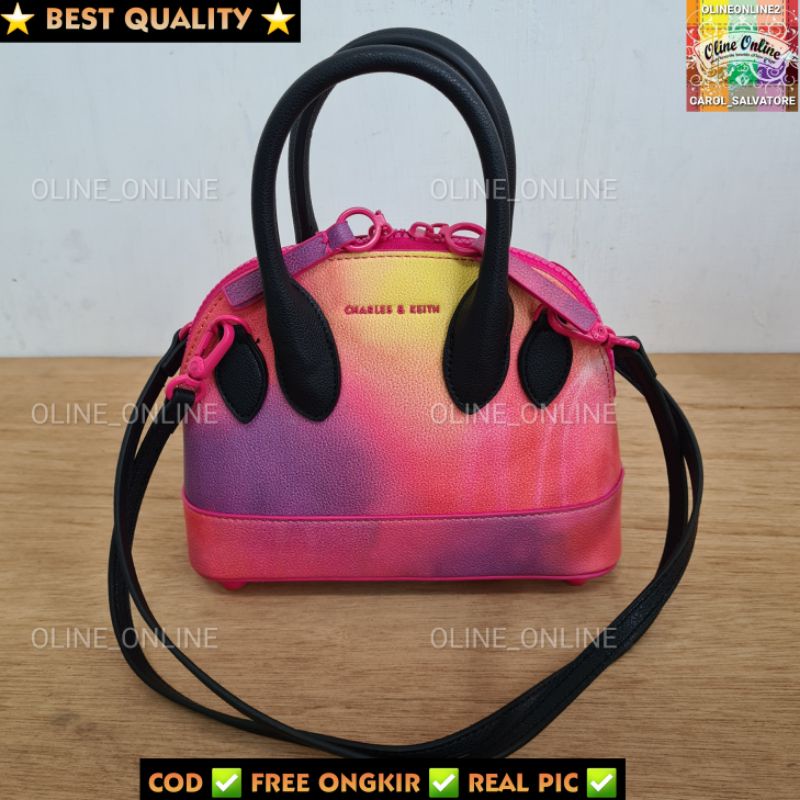 Tas Wanita > Tas Selempang & Bahu Wanita > [oline_online] 12.22 tas harmonee gradasi colorful orange sunset holographic pink beige cream green blue harmoni ck harmony dome satchel small mini size bag shoulder bag