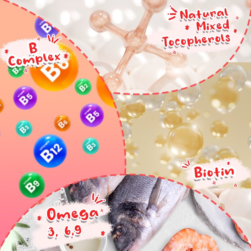 Dengan 5 bahan utama yang diimpory langsung dari California, USA : * Biotin * Brewers Dried Yeast * Taurine * Natural Mixer Tockpherols * Organic Rosemary Extract