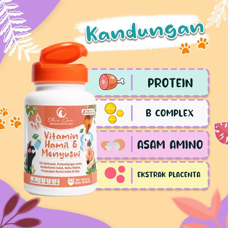 HAMIL MENYUSUI Olive Care: 1. Vitamin Kucing Imunitas Tubuh, Flu/Pilek, Sakit/Lemes, Lanjut Usia dan Anti Virus 2. Vitamin Nafsu Makan, Berat Badan Kurus, Bulu Rontok/Kusam dan Imunitas Tubuh