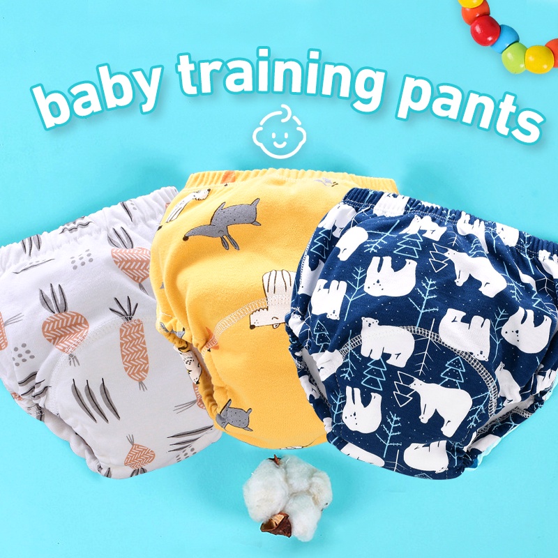 Training pants adalah celana dalam yang membantu anak dalam menjalankan latihan buang air ke toilet (toilet training). Di dalam celana telah terdapat penyerap cairan yang sudah dijahitkan langsung bersatu dengan celana. Celana dalam yg bisa menyerap air pipis, sehingga tdk tercecer dilantai yg mengakibatkan si kecil terpeleset..Jika telah jenuh maka cairan akan merembes ke lapisan outer, hal ini bermanfaat sebagai indikator saatnya mengganti celana. Kegunaan ; melatih anak toilet training, bagian dalam celana jika terkena pipis tetap basah, tapi tak tercecer di lantai