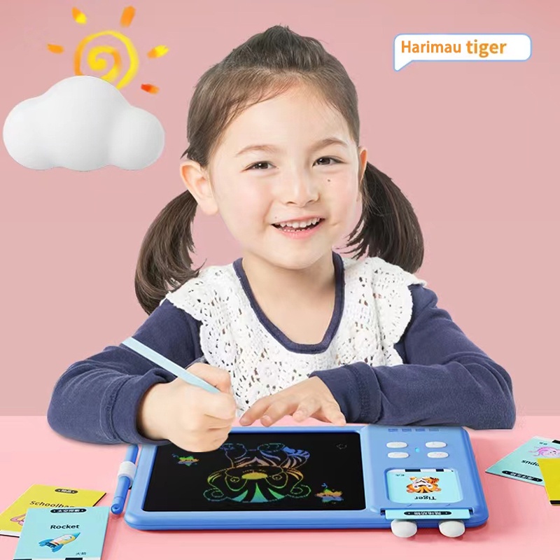 Detail olla Card Early Education Bilingual Device dan LCD Writing Drawing Tablet 2 in 1 Mainan Belajar Anak Pengenalan Kosakata Bahasa Inggris