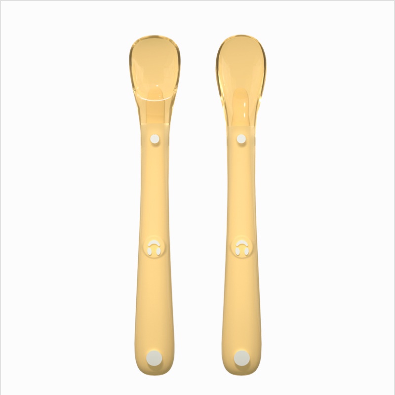 ️olla Sendok Silikon Lentur Bayi MPASI 1 Set isi 2pc + BOX PENYIMPANAN WARNA KUNING