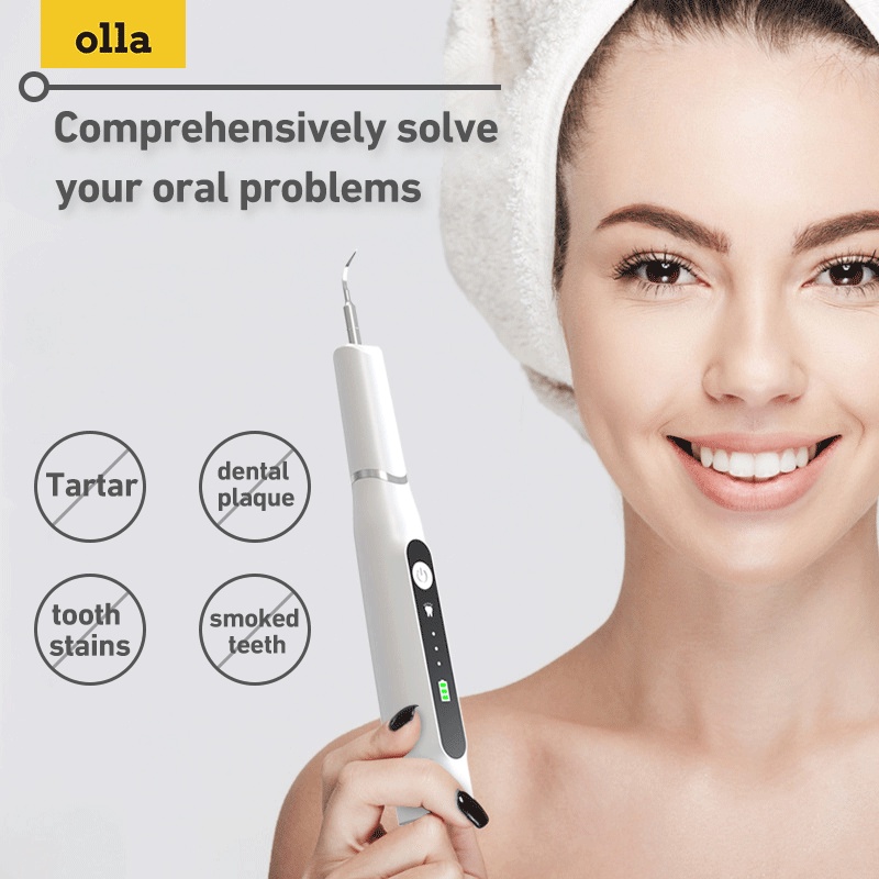 Video perkenalan produk Olla scaler listrik 2,1 juta / mnt getaran waktu perawatan scaler ultrasonik pembersihan karang gigi scaler penghapusan karang gigi. Sumber: Shopee.