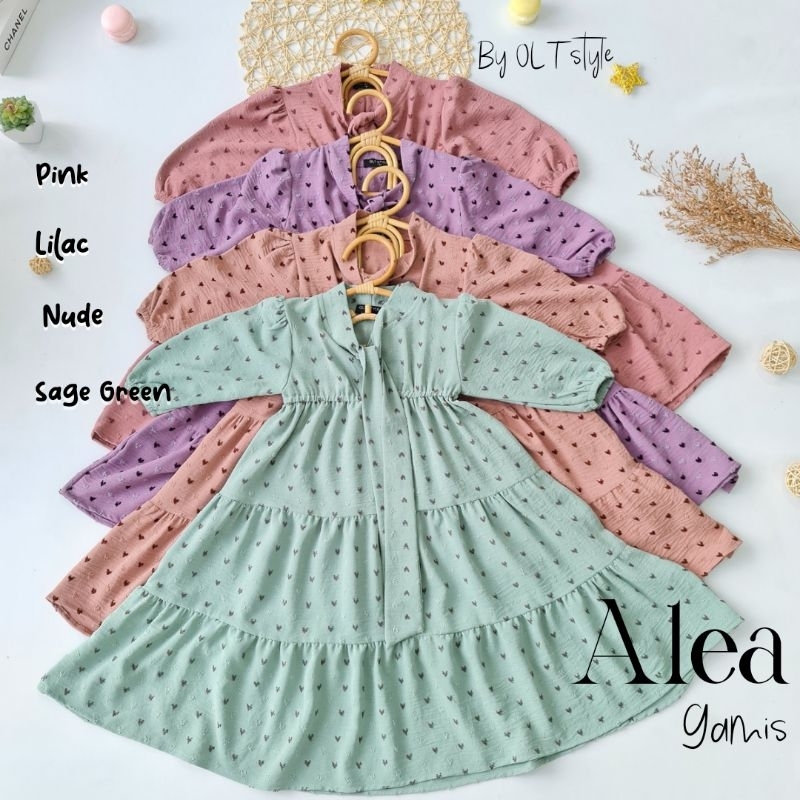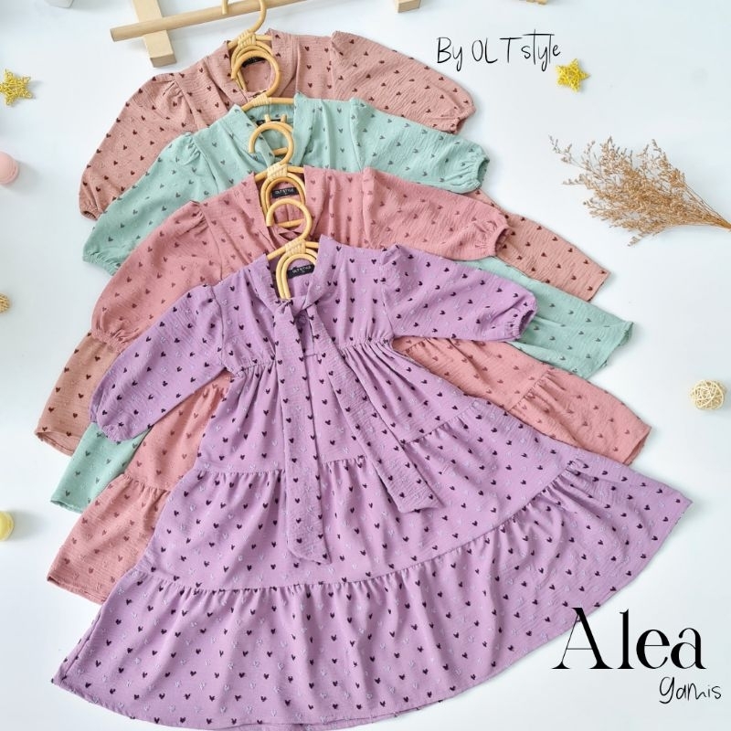 Detail model - Tingkat variasi kerutan super lebar (flowy cutting) - Bagian kerah pita manis sesuai kreasi - Kancing depan - Kerut di bagian pinggang menyesuaikan badan anak - Tangan model puffy dan pergelangan karet elastis - Jahitan rapi