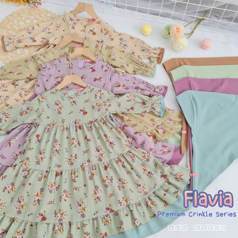 Detail Ollet Gamis FLAVIA CRINKLE premium / gamis set syari anak