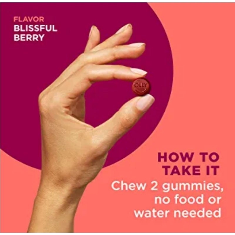BLISSFUL BERRY Blissful Berry flavor contains a delightful blend of juicy berries. OLLY gummy vitamins are naturally delicious, scientifically formulated, contain zero synthetic colors or flavors and gluten-free.