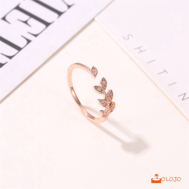 Detail OLOJO Cincin Daun Imitasi Wanita Zirkon Daun Pohon Sederhana Rings