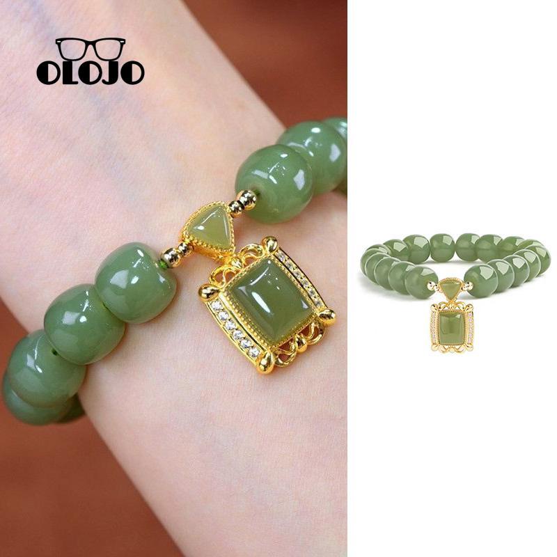 Gelang Giok Hetian Imitasi Alami Retro Elegan Niche Desain Gelang
