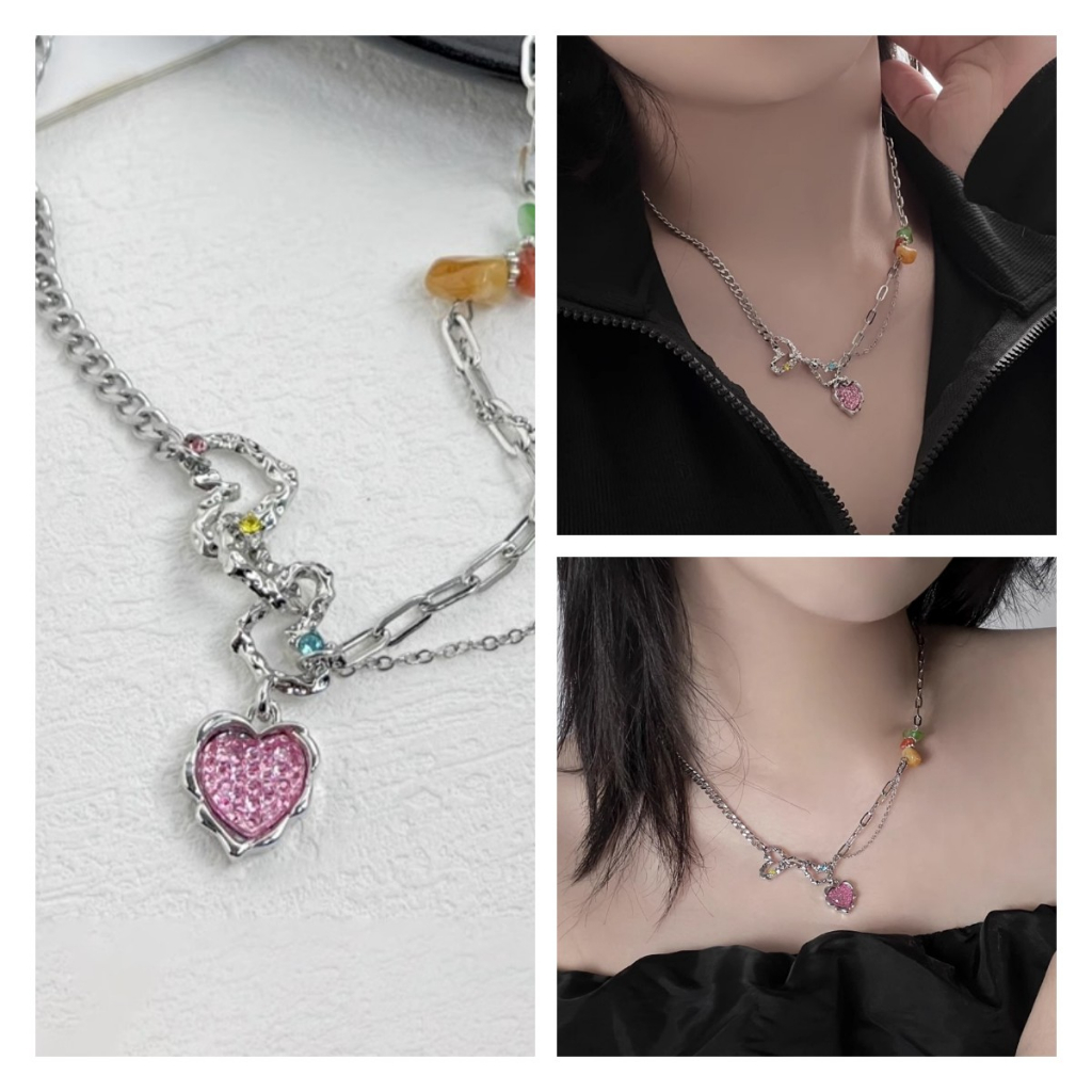 Detail [Olojogrosirwarna-Warni Hati Tulang Selangka Kalung Pria Wanita Ins Gaya Kalung Retro Temperamen Aksesori