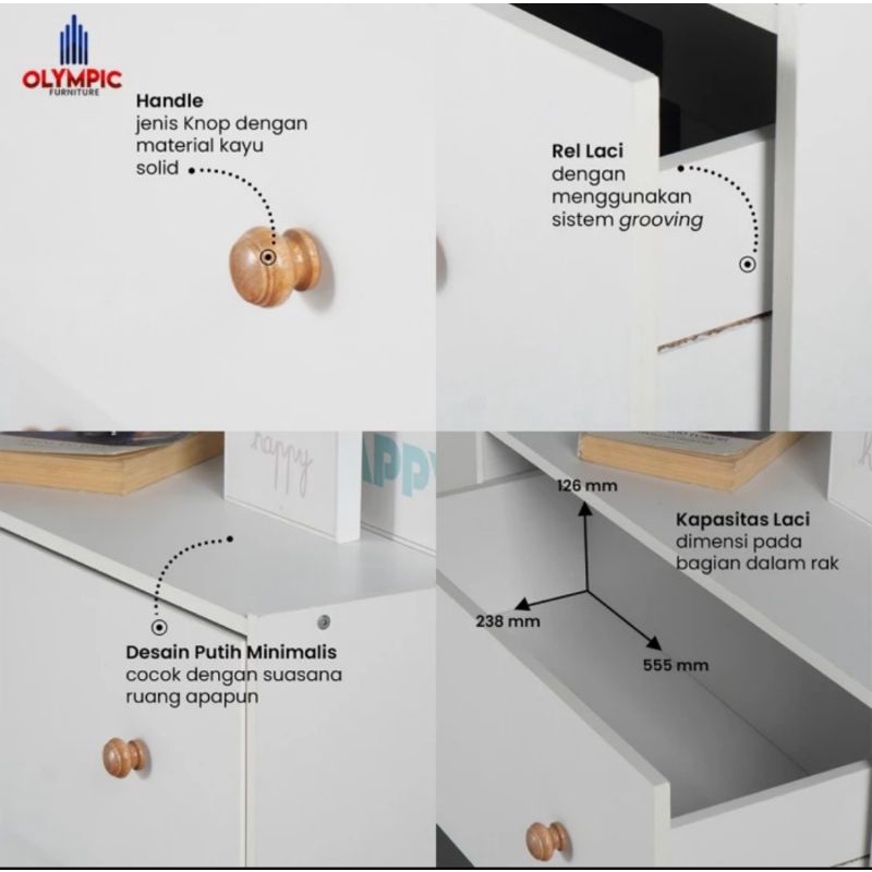 Detail Olympic Drawer/ Laci Penyimpanan / Tempat penyimpan/ Laci Serbaguna Multifungsi/ DR RUBIK _ WHItE