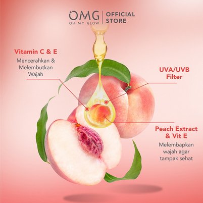 Pelembab Wajah yang diformulasikan dengan serum vit B3+C+E dan peach extract sehingga memberikan efek wajah yang cerah merona seperti peach, wajah tampak sehat dan lembab, serta dilengkapi pula dengan UVA/UVB filter dan oil control formula.