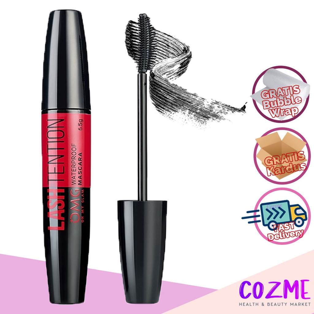 Keunggulan OMG OH MY GLAM LASHTENTION Waterproof Mascara: 1. Melentikkan dan menebalkan seperti lash extension. 4X lebih tebal dalam 1 layer, 8x lebih tebal dalam 2 layer. 2. Tidak menggumpal (no clumpy). 3. Hasil akhir bulu mata rapi dan terpisah. 4. Tidak luntur bila terkena air (waterproof). 5. Tidak luntur bila terkena minyak/keringat (smudgeproof). 6. Tampilan bulu mata terjaga hingga 8 jam (longlasting 8H).