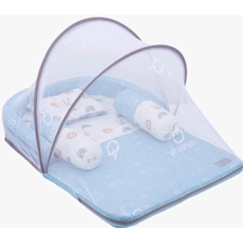 Dimensi Kasur (sarung bisa dibuka dan dicuci): - Tinggi : 90 cm - Lebar : 58 cm - Tebal : 5 cm Dimensi Bantal Peang (sarung tidak bisa dibuka) : - Panjang : 19 cm - Lebar : 23 cm Dimensi Guling (sarung tidak bisa dibuka): - Diameter : 12 cm - Panjang : 35 cm Bahan Luar : - Kain Printing 2 Color - Kain Micro Polos 2 Color - Kain Tile Bahan Dalam : - Spondbond (Bantal dan Guling) - HDP (Dasar Kasur) - Silicon (Isi Bantal) - Dacron Reguler (Isi Guling) - Besi Baja (Penahan Kelambu) Fungsi : - Tempat Tidur Bayi - Bantal dan Guling - Kelambu (built in - tidak bisa dilepas) sebagai pelindung dari nyamuk