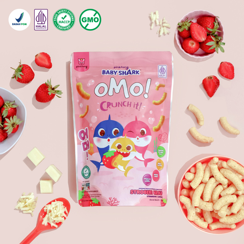 OMO! CRUNCH IT BABY SHARK STROBERI KEJU Camilan Bayi Usia 9++ Bulan 25 gr