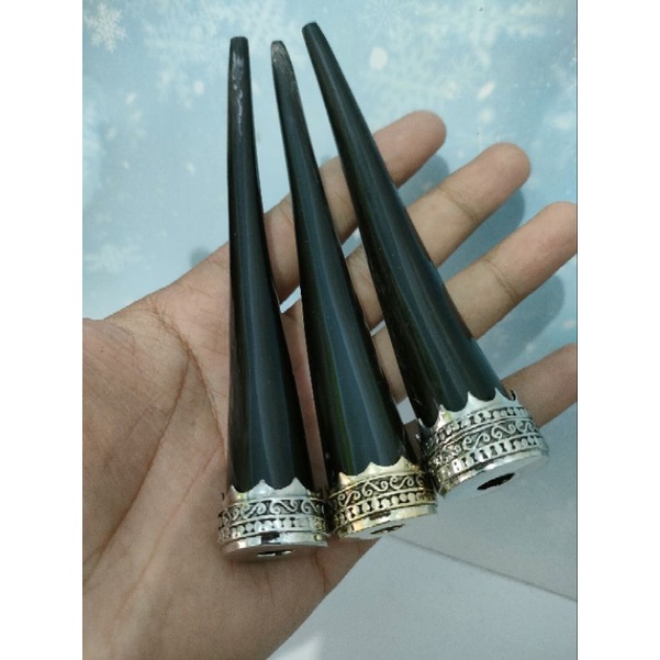 bahan tanduk kerbau asli diproses sendiri tgn prtama atau pengrajin udah panjang 7-12cm motif semi bulat dan hisapan pipih warna bule dan hitam produk dijamin mulus terimakasih